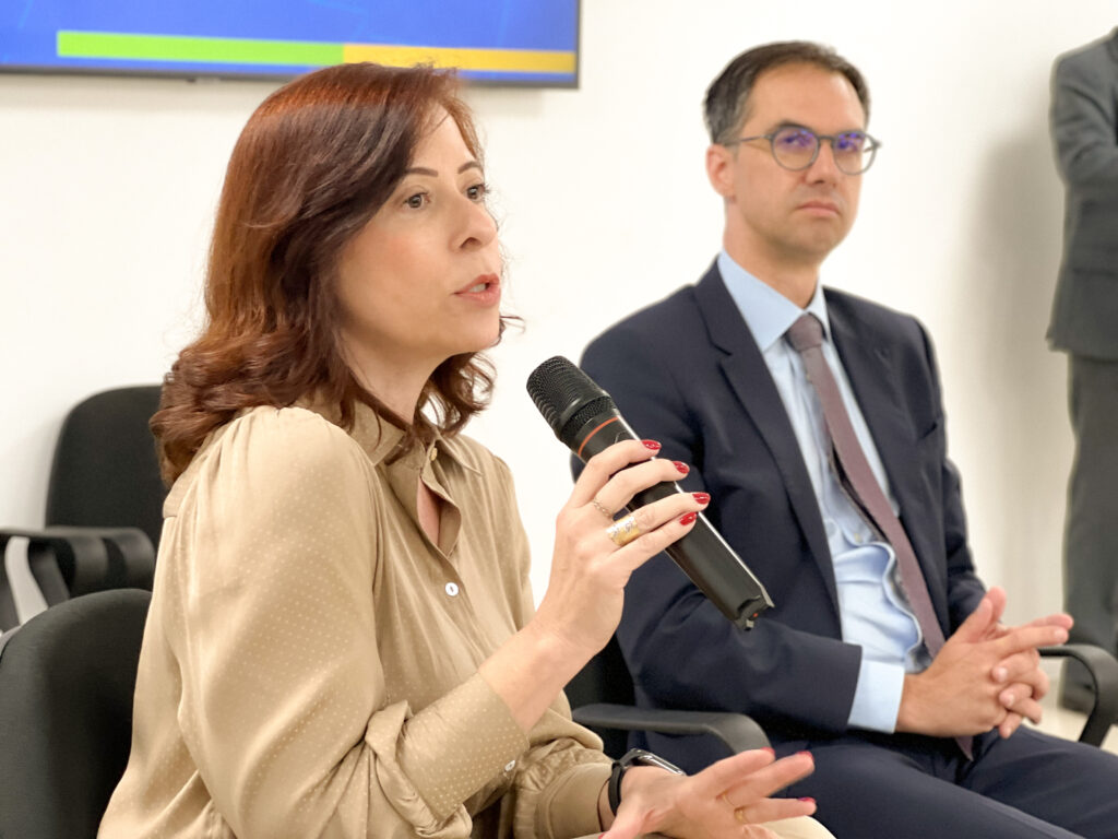 As EPPGGs Etel Mendes, presidente do SindGestor e servidora da Secretaria de Estado da Transparência e Controle (SETC), e Camilla Almeida, da Secretaria da Fazenda (Sefaz), participaram da Roda de Conversa: Rede de Integridade e Regras da OCDE, realizada na Procuradoria-Geral do Estado (PGE).